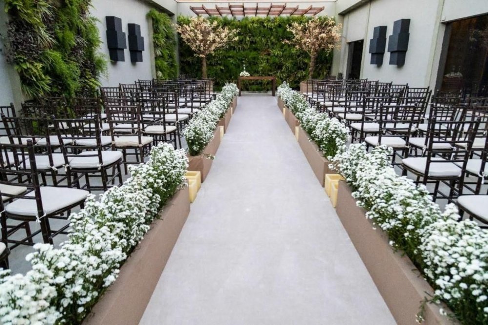Os noivos convidam para recepção no dia 22 de fevereiro de 2026, no espaço Armazém - Vila Leopoldina, São Paulo, e se iniciará logo após a cerimônia.